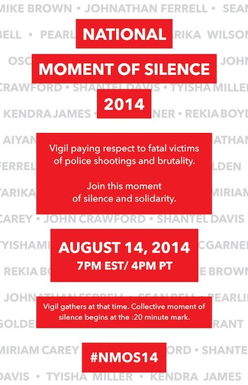 Philadelphians are gathering this evening at Love Park, Center City, at 7PM to participate in the National Moment of Silence, a peaceful vigil to remember Michael Brown, who was senselessly shot down in Ferguson, MO earlier this week, and to reflect on all the violence inflicted on African American communities and the injustice that follows in its wake.